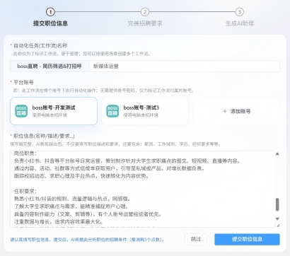 自动化工作流,智能分析岗位需求,进行简历评估,并完成与求职者打招呼聊天。